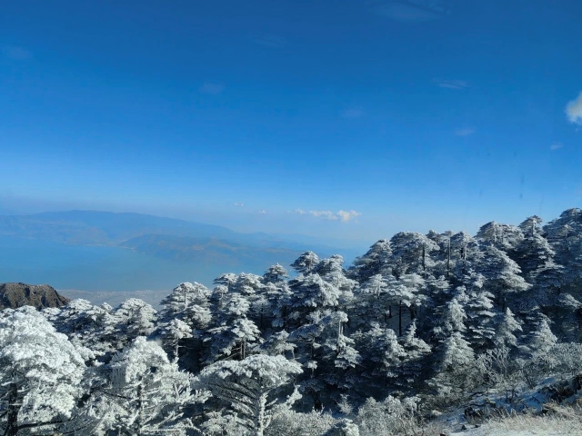 大理的“风花雪月”耳熟能详,可苍山雪却是难得一见。蓝色的天空,绿色的灌木,银白的树冠,强烈的视觉差仿佛置身于画卷当中......
