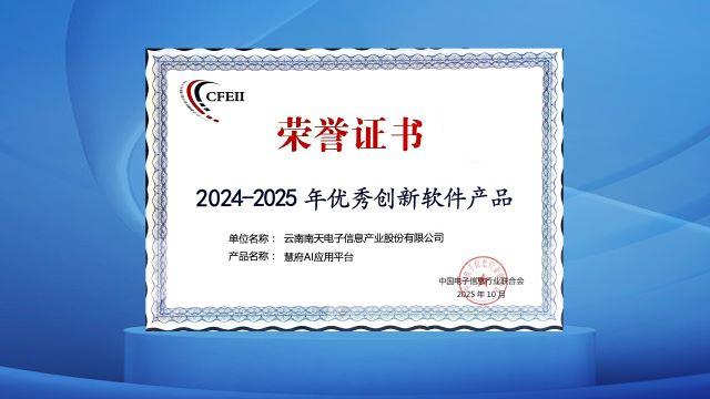 10月15日,由中国电子信息行业联合会主办的第27届中国国际软件博览会在郑州举办。大会期间发布多项软件和信息技术服务业创新成果,南天信息再度登榜“软件和信息技术服务竞争力百强企业”榜单,名次跃升至第26位,较去年上升5位;南天信息慧府AI应用平台荣获“2024-2025年优秀创新软件产品”。
