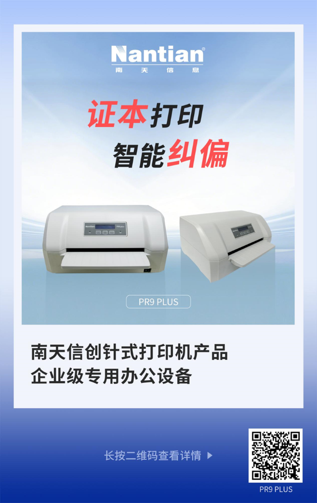 南天信创针式打印机是以国内供应链为核心推出的新一代高级针式打印机产品,支持打印存折、票据、交易单据、凭证、不动产证、疫苗本、结婚证、户口册等,可广泛应用于金融、民政、公安、卫生防疫、国土资源、水务、保险、交通、能源、物流等领域。