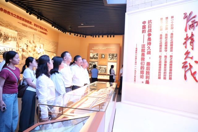 在庄严肃穆的纪念馆内,全体人员在专业讲解员的引导下,依次参观了各个展区。重点陈列的《论持久战》多个珍贵版本、抗日根据地军民使用过的实物、百团大战场景复原等历史见证,生动再现了那段烽火连天、全民抗战的壮烈岁月。通过一封封深情厚重的抗战家书、一段段珍贵的历史影像、一件件真实的实物展陈同志们深刻感受了抗战年代的艰苦卓绝和英雄人民的坚定信念。