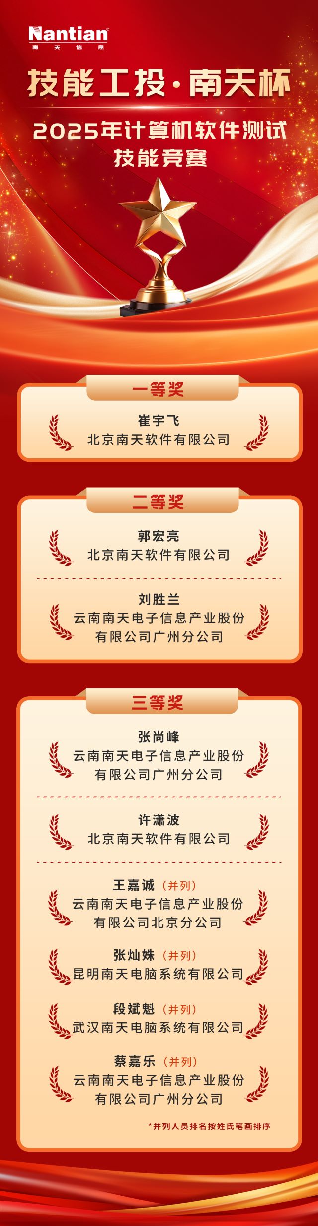 本次技能竞赛不仅有效激发了南天人精进测试技能、提升专业素养的热情,更通过“以赛促学、以赛促干”的模式,为集团公司及南天信息发掘和培养了一批理论扎实、技能过硬的软件测试专业人才,为后续软件项目质量提升与产业高质量发展注入了强劲动力。